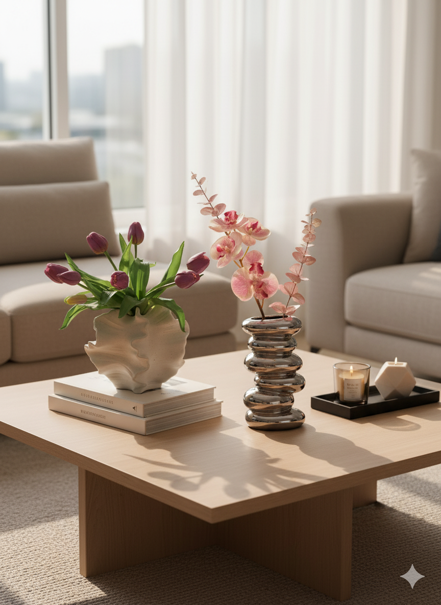 Ceramic White Coral Shell Vase Home Decor - Modern Nordic Boho Minimalist Living Room Centerpiece